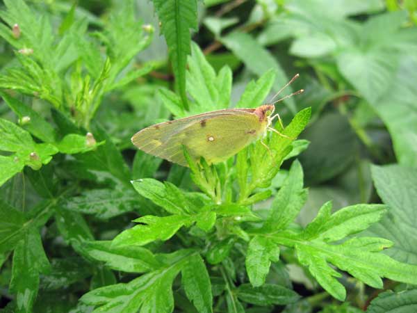 朝、雨が降っていましたが、傘を差して川沿いの土手を歩くとチョウやトンボが思い思いの場所で雨に濡れていました。