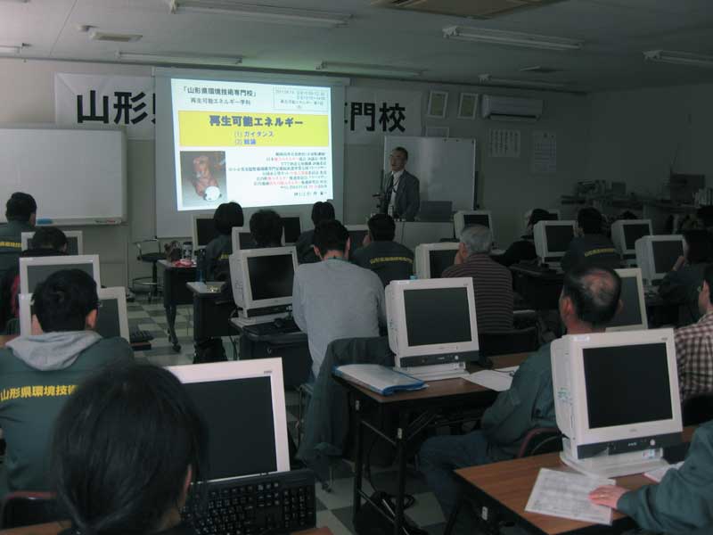 IMG_5323.jpg 3限目からは、丹 省一先生の講義です。太陽光パネルや風力発電、小水力発電が取り上げられます。今期の講義にはやはり震災と原発事故の話題が取り上げられました。震災によって運用できなかった風力発電システムはなかったそうです。そればかりか小水力発電による発電も連系により電力会社に協力する事になったそうです。不安定だとして過小評価された自然エネルギーがにわかに注目を集めている様です。