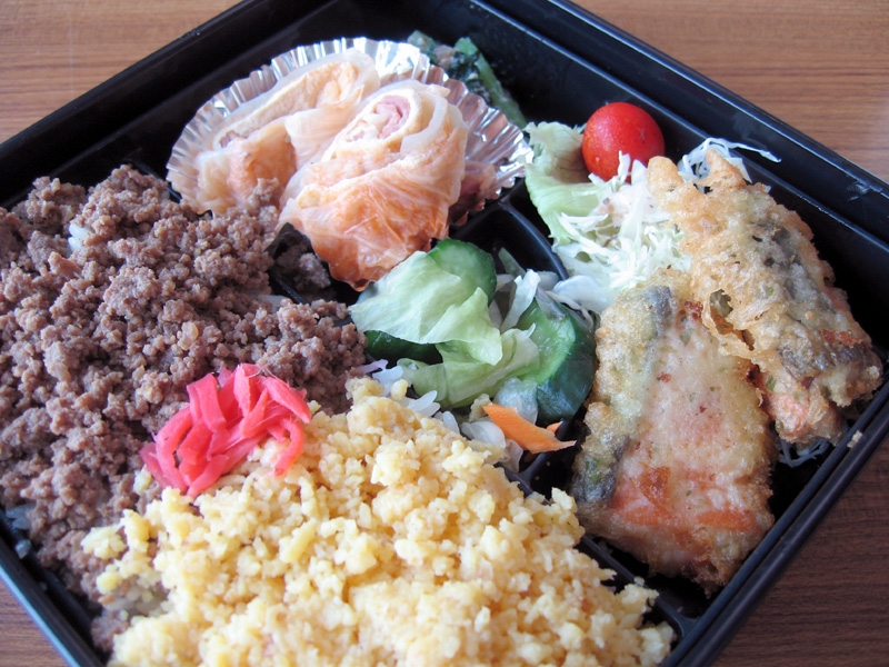今日は、そぼろ弁当ですね。「安心・安全・美味しいお弁当」として提供されるメニューには毎度ながら頭が下がります。とても美味しくいただきました。生涯で最も贅沢なお弁当をいただいている様な気がします。ごちそうさまです♪