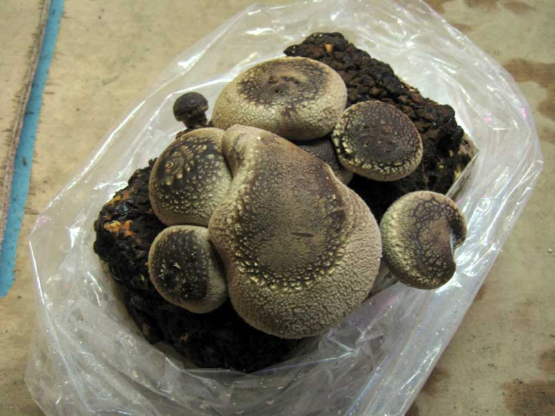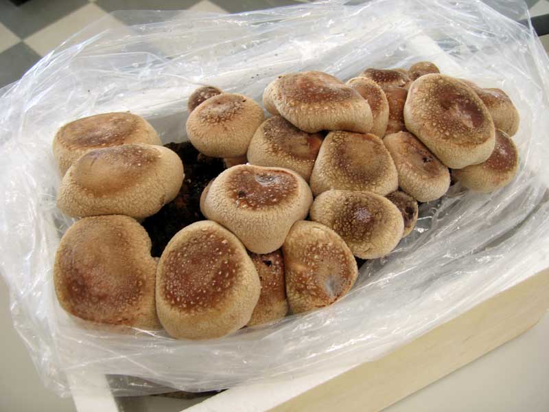 光を当てず実験室外の低温の場所に設置した椎茸