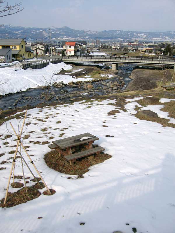午後、仲間と少し話をしてから家路に就きました。冬を越える間に足の筋肉が増強されたのか、ペダルを踏むのが楽な様に感じます。陽は西に傾き、夕暮れを迎えようとしていました。葉山の向こうには月山が泰然と聳えています。ふいに山形で暮らしているのだと言う実感が湧いてきました。県外生活が長かった為か山形への郷愁も強かったのです。けれどそれも11年の間にすっかり慣れてしまいました。それで普段「山形」を意識する事は少なくなったのですが、何かの弾みに突然、郷愁のような満足感のような感覚が湧いてくる事があるのです。葉山と月山は、その象徴的な存在でもあります。暮れて行く空を鳥達の群が家路を急いでいる様でした。