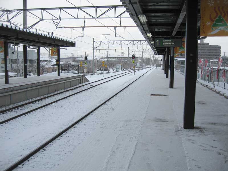 案の定、朝から雪が降っていました。路面はサラッと積もった程度だったので自転車を出そうか思案しましたが、時刻に間に合いそうだったので電車を選択しました。すると、発車して間もなく車窓から見える風景には雪がますます強くなる様子が見え、自転車で走った場合を考えてホッとしました。