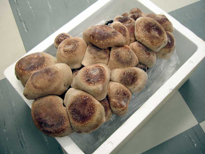 低温環境で一週間栽培し、地熱利用栽培に切り替えた椎茸。