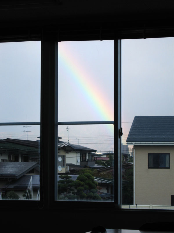 午後はOJTの時間となりました。チーム毎に具体的な活動が始まりました。今後の動向を調整しながら意見交換をして成果を残す為の活動と言うことになります。窓の外には大きな虹が出ていました。