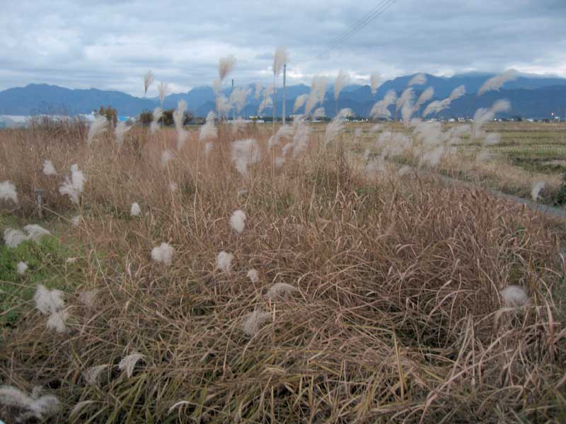 近年、ススキ野原が減少した様に感じるのは、セイタカアワダチソウの勢力拡大の為でしょうか。セイタカアワダチソウはその名を知られた帰化植物です。根から分泌されるアレパロシーと言う物質により、他の植物が育つことが出来ない様に駆逐してしまうのだそうです。そしてそれが自己中毒を引き起こし、やがてセイタカアワダチソウも育つ事が出来なくなるのだとか。ここで「アレパロシー」が除草剤にならないだろうかと考えました。するとやはり同様の発想をする人はあるもので、実際に実験まで発表されていることを知りました。除草剤と言うと不自然に植物の枯れたあぜ道を想像してしまうのであまり賛成も出来ないですが、天然素材と言う部分は興味深いです。