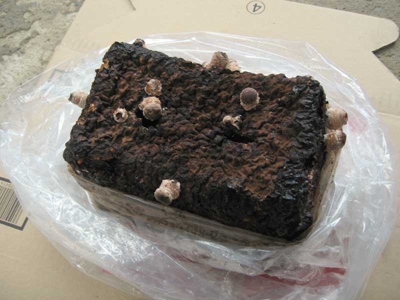 椎茸の菌床ブロックを観察すると相変わらず2期目の発芽が見られません。原因が解らず途方に暮れるばかりです。比較的栽培が容易である事と踏んでいたので、2期目で発芽しなくなる事は想定外なのです。実験室で栽培している菌床ブロックの中でも状態に違いが見られます。ひとつは含水率が高く、表面はカビのようなコロニーが観察できます。触ってみるとフワフワとスポンジのような感触でした。もうひとつは表面が乾いていますが、弾力があるもの。そして表面が乾いていて菌床に触ってみると締まりがあるもの。最も懸念されるのは含水率が高くスポンジ状の菌床ブロックです。表面にはハエの幼虫のような虫も見つかりました。この虫が菌床内部まで入り込んでいる事を心配しましたが、菌床内部はまだおがくずの様にきれいな色をしている様です。専門校へ戻って調べてみることにしました。
