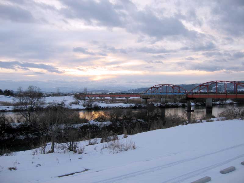 外に出ると朝日連邦方面へ夕日が落ちようとしていました。まるで絵に描いた様な光景です。穏やかな一年の幕開けに気持ちも一新です。