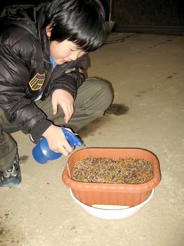 一方で試しに移植した間引きした方の苗は元気がなくなってグッタリしています。S3くんが積極的にお手伝いをしてくれて、水分補給の為に霧吹きで水をやってくれました。それから温室へ苗を温室へ移動しようと言う事になったのですが、雪の為に移動が困難です。すると、スコップと長靴を持参したSさんとS3くんが前日に太陽光チームがつけてくれた雪の中の道筋に沿って除雪をしてくれました。朝5時半から自宅の除雪をして来たというのに!お陰で温室に辿り着く事が出来ました。本当に支えられて生きてます。感謝!