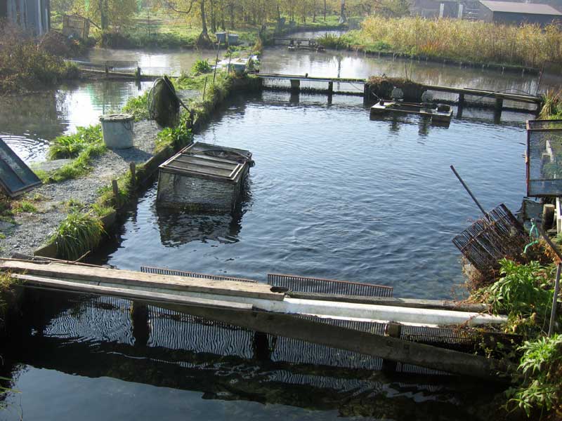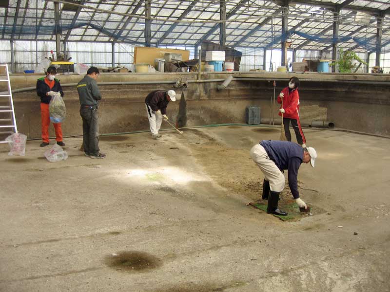 設置場所は養魚場に利用されていた水槽なので、底に傾斜があります。