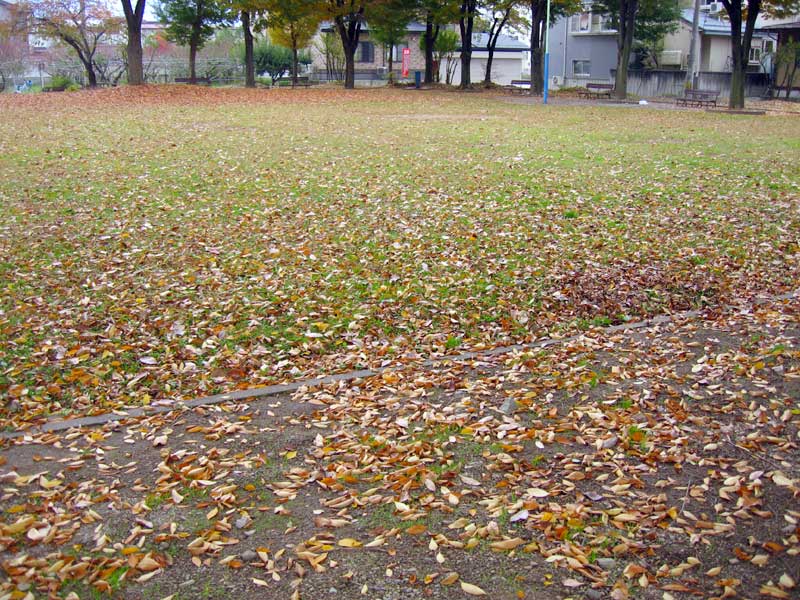 空模様が怪しくなりつつある中、自転車を走らせると近所の公園を通りかかるとケヤキの木が落葉していました。ほんの数ヶ月前は蝉時雨が降り注いでいました。時の流れの速さと四季の変化が明確に見て取れます。