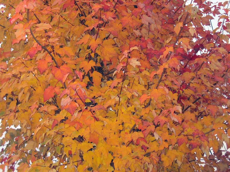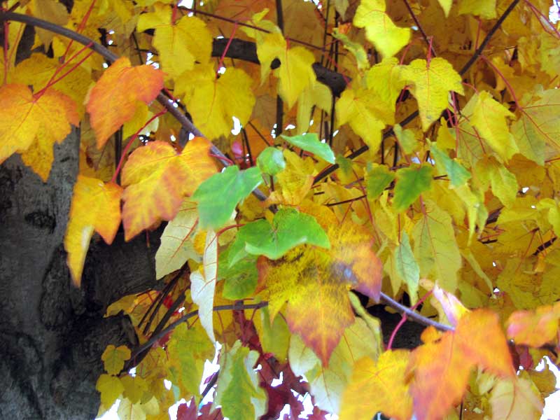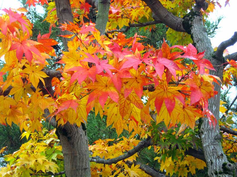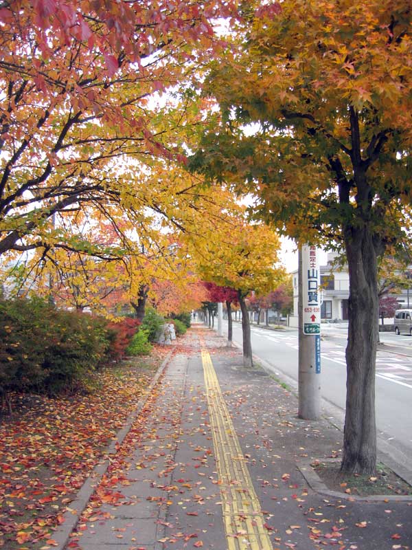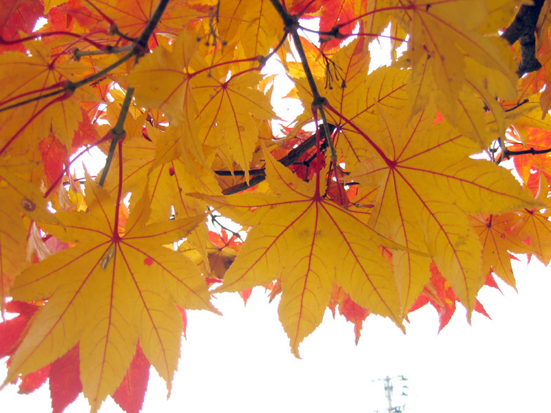 午後から少し雲が出て来て紅葉の色も今ひとつですが、秋の町の彩りを記録してきました。真っ赤や黄色一色に染まる光景もきれいですが、緑色が少し混じっていると色が強調されますね。
