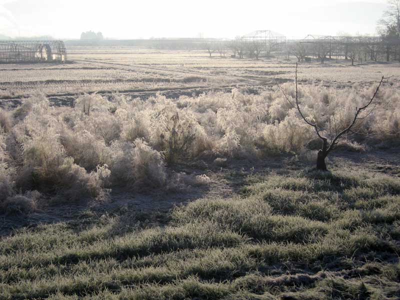 今朝は霜が降りて冷凍庫の中の様な光景。顔と足先が冷えてピリピリしました。