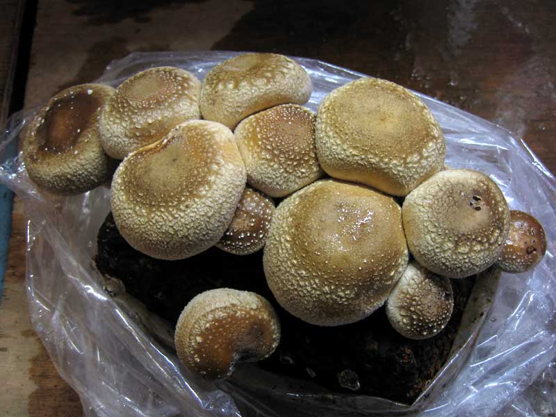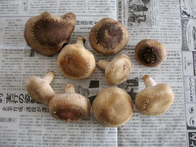 光を当てず実験室外の低温の場所に設置した椎茸