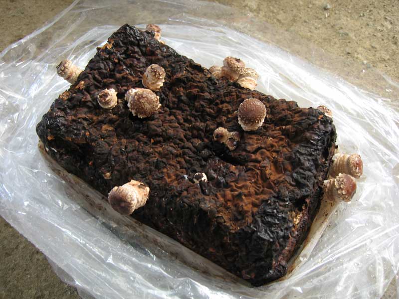 実験室外に設置した椎茸はいくらか大きくなったようですが、栽培開始から一週間が経過したので暖かい場所へ移動することにしました。
