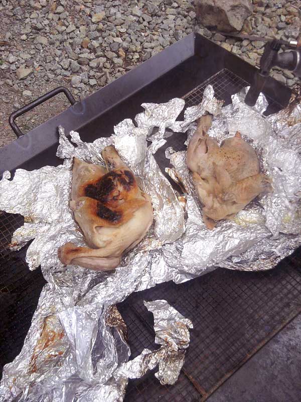 昨日、有志によりフランス産の黒鶏プレノアールを丸焼きにして試食すると言う何とも大胆な企画が実行されました。鶏の丸焼き…実にマンガチックな…あ、いや、実に夢のある(笑)企画だったわけですが、実行メンバーのお肌の艶が今朝は心なしかいい様な気がしました。さて、画像を提供してくれたY.S君の感想です。