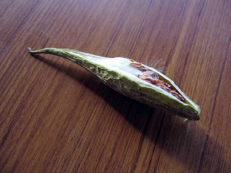 冷え込んで来たと思ったら、山には雪が積もった様です。ガガイモの葉も黄色くなり、他の植物と混じっていて見分けにくかったガガイモが、葉が黄色くなって来たお陰で目立ち始めています。そして、訓練校で保管してあったガガイモの袋果が自然に裂けて中の種と綿毛が出てきました。それはサナギから羽化する蝶の様に美しい光景です。古事記にも登場すると言うガガイモです。古事記を編纂した作者はガガイモにどんな想いを込めたのでしょう。