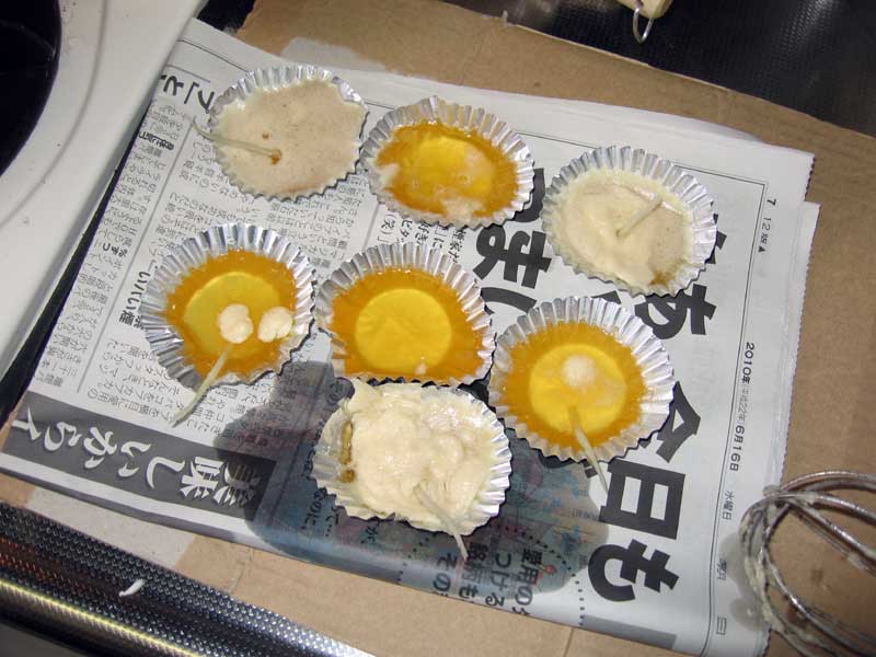 気を取り直して次は石鹸を先に練り石鹸状にしてからBDFに投入しました。そしてまた湯煎にかけてしばらく混ぜていたら今度は溶けてムース状になってきました。しばらくして完全に溶けたようだったので用意したアルミホイルの器に分けて入れると…なんと分離していました。ムース状のものに灯心を入れて着火実験をするとちゃんと火は点きます。ただ、若干煤が出る様です。半固形状のムースは熱で溶けると液化してアルミホイルの器にたまります。そこで実験は終了。貴重な実験失敗データを手に入れました。実験の検証をしつつ別の方法を試すことにして今日の実験は終了です。