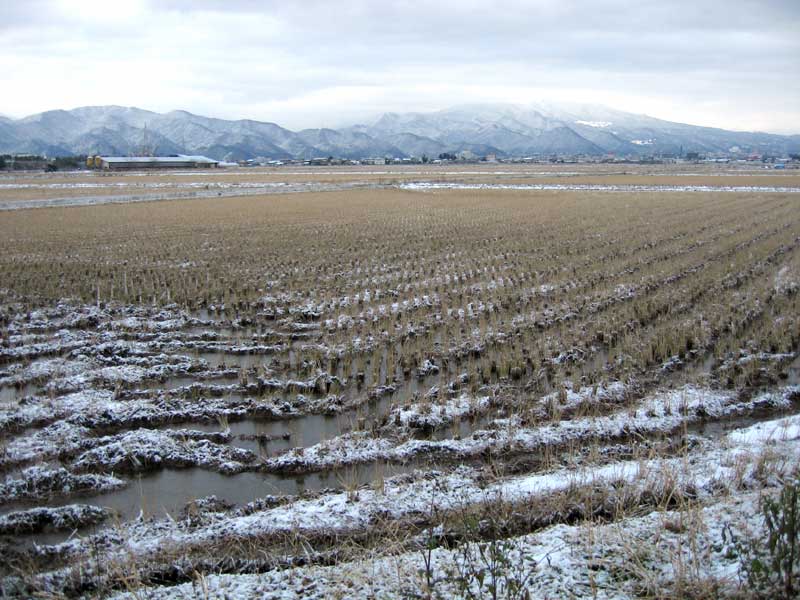 遠く山々に視線を移すと白い粉を振り掛けたような雪化粧です。