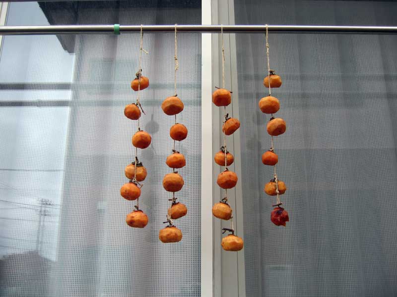 山形県内で雪が降ったと言う話が伝わってきました。昨日に引き続き自宅でビオトープに関する課題に取り組んでいたので外の様子が解りません。窓から外を見たらせっかくの干し柿が雨に濡れていました。雨が上がる頃には紅葉していた木々も葉を落としていることでしょう。