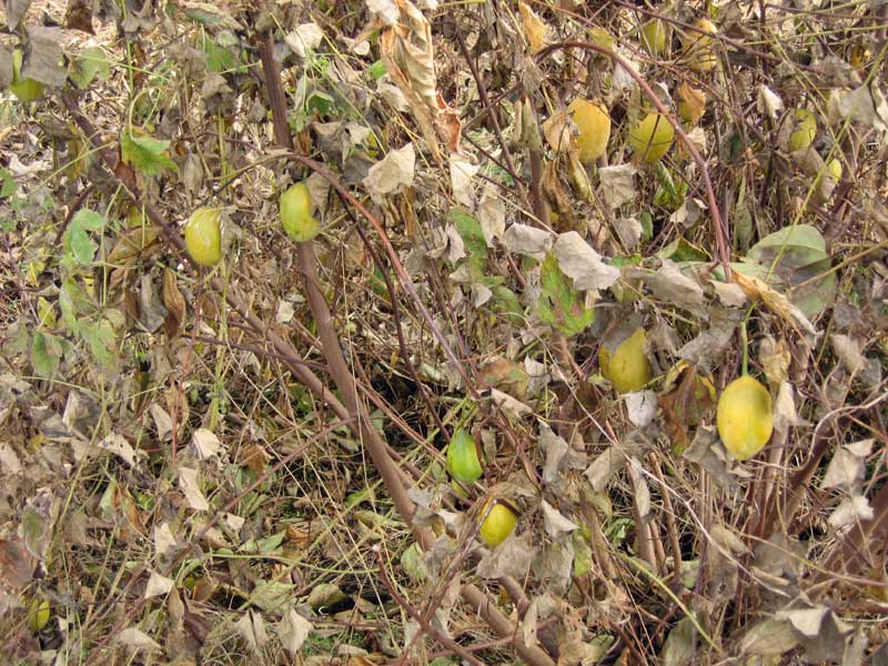 さて、午後から山形市総合スポーツセンターへ出かけました。途中、道沿いの土手に黄色い実がなっていました。カラスウリかと思いましたが「カラスウリって真っ赤だな」と言う唄がありますよね。どうやらキカラスウリという植物の様です。