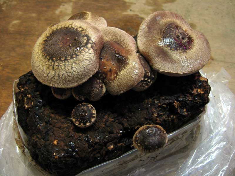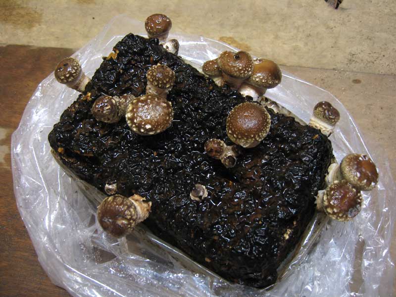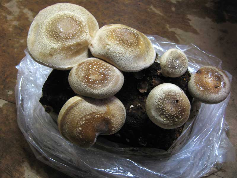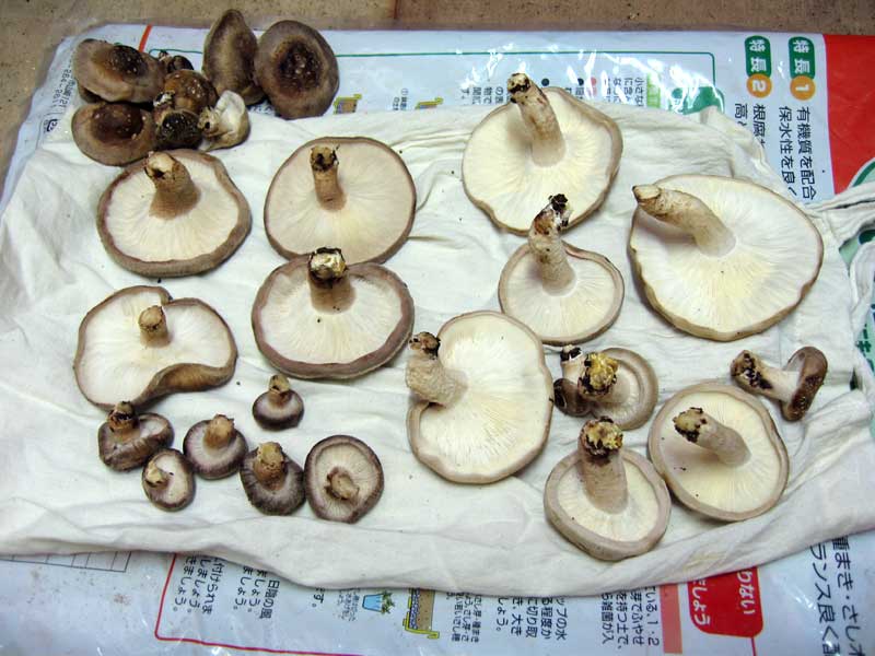 低温環境で一週間栽培し、地熱利用栽培に切り替えた椎茸。