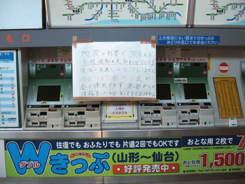 山形は大地震の影響があったとは一見して解らない程に平穏です。でも、スーパーやコンビニへ一歩足を踏み入れると明らかに品薄です。必要と感じている物程売り切れています。それからガソリンです。山形市他近隣の市町村のガソリンスタンドでは軒並み売り切れとなり、売ってもらえても10リットルとか5リットルなのだそうです。