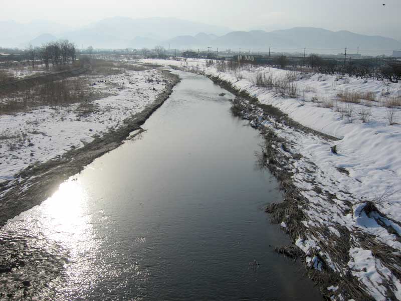 今日は山形市に用向きがあったので、例によって自転車を走らせました。道路沿いの畑に梅の花が咲いていました。橋に差し掛かってちょっと休憩です。何の効果か解りませんが、春の川の水は色がエメラルド色に見えます。アオサギでしょうか。丁度小魚を捕まえて食べていました。 途中、スポーツセンターに寄って雪室のその語の状態を確認しました。雪室のある山形市総合スポーツセンターに着くと炊き出しの人たちが後始末を始めようとしていました。自転車を雪室の傍に停めて中を確認します。目視ではまだ9割程度の雪が残っている様です。