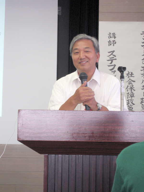 午後は山形市総合スポーツセンターに会場を移動して特別講義です。自然エネルギーの講義をしていただいている丹 省一先生のご御紹介ではるばるデンマークからステファン・スズキ先生の講義を受けることが出来ました。