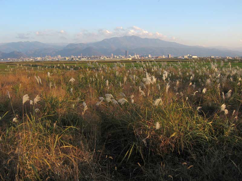 帰り道、空はすっかり晴れていました。角度の低くなった太陽光線を浴びながら自転車を走らせているとススキが夕日に染まっていました。