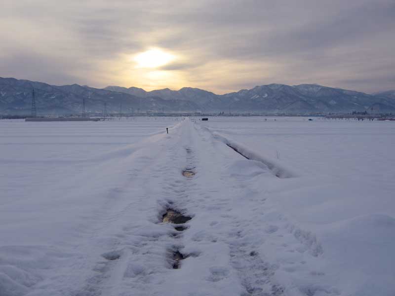 雪が少し落ち着いたのを見計らって久しぶりに自転車で専門校まで走りました。すれ違った中学生はまだ自転車通学を止められているのか、集団で登校している様子でした。朝はまだ風が冷たいのですが、雪原を眺めながら自転車を走らせるのは爽快です。朝陽が昇り穏やかに雪景色を照らしています。およそ一ヶ月ぶりのためか体力も落ちているらしく、まだ走れない場所もあるので休憩を取りながら走ります。通りかかった川には白鳥の姿が見られました。鴨等の野鳥の姿も見えます。巷では鳥インフルエンザが流行っているようですが、当の野鳥達は関係ないと言った風情です。