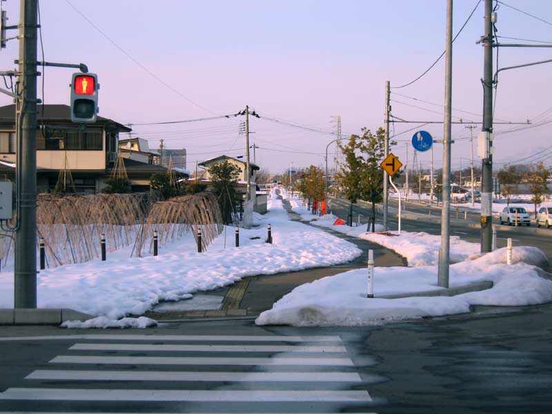 専門校からの帰り道。少しシェアハウスに寄ってから天童の自宅へ走りました。自転車での筋肉に加えて歩いた事による筋肉が追加されたようで、大腿部が太くなったような気がします。道にはまだ雪が残り、自転車で走るのにも少し工夫が必要です。それでも久しぶりの自転車を堪能しました。