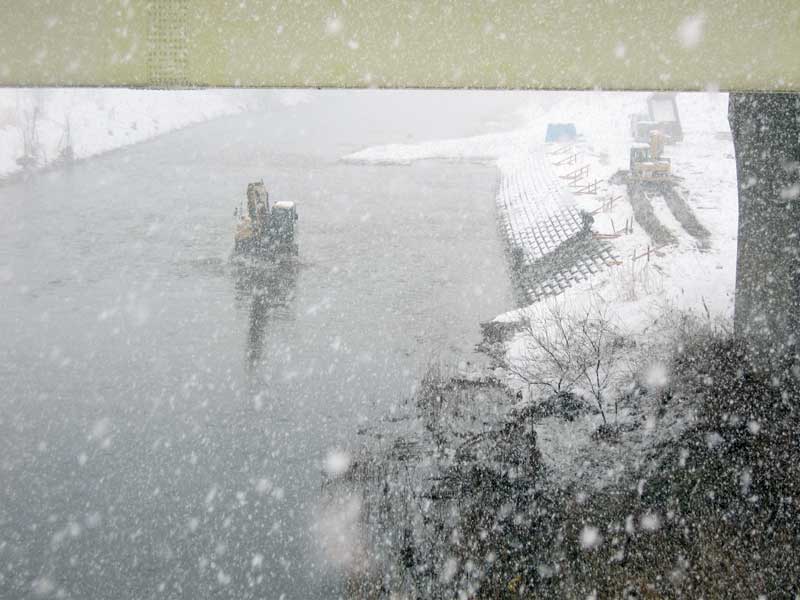 帰宅する途中、道路の改修工事らしき作業の人や川の中で工事用機械を操作する姿が見られました。こんな時に???不思議に思いながら帰宅しました。